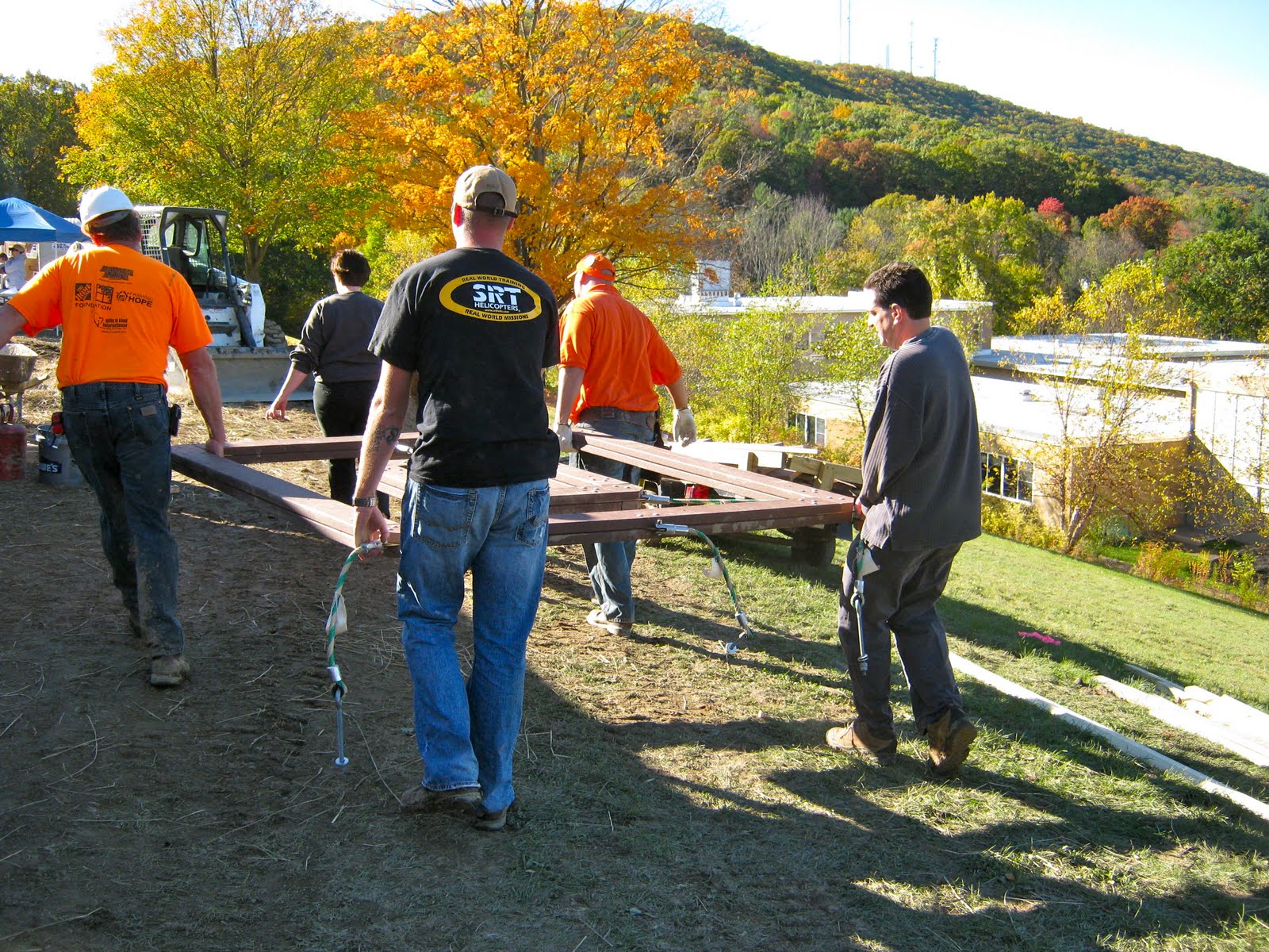 A daughter teaching her father. She was a preschooler when he worked on the community playground in Bath, New York, over twenty years ago.