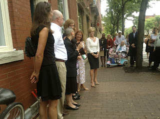 The ARTS* has a new home, still on Market Street, but further west and now on the north side of the street. Huge crowd and the ribbon was certainly representative of art... Staff from Vitrix Hot Glass Studio walked over from next door and strung a glass ribbon for the ribbon-cutting ceremony.